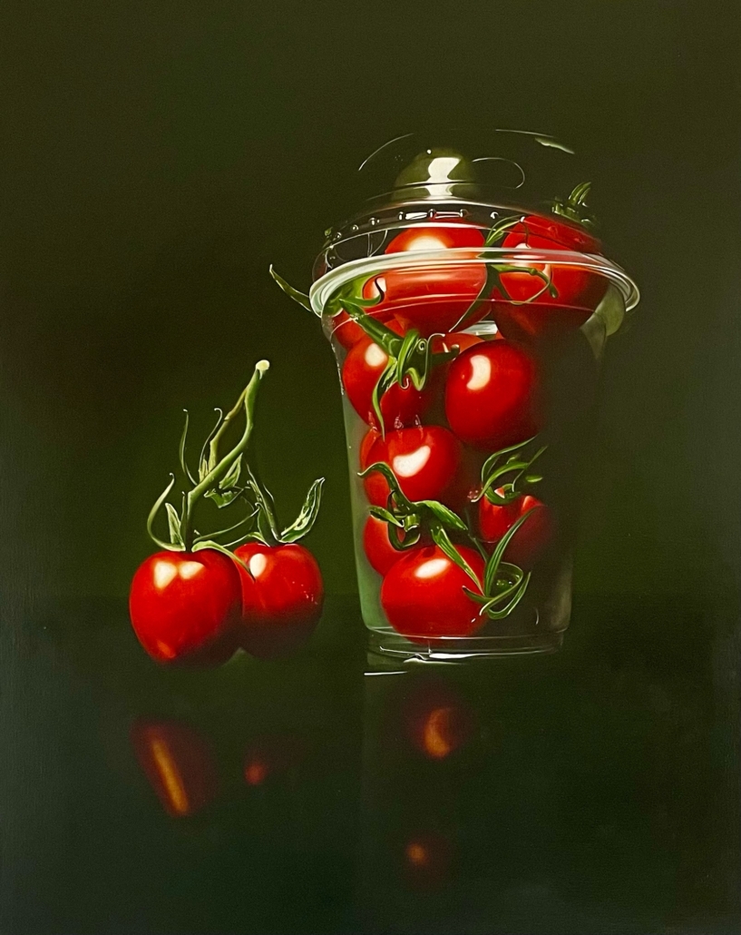 Manon Babtist toont grote schilderijen waarop IN PLASTIC VERPAKT FRUIT zeer gedetailleerd wordt weergegeven. Dat is met een reden: “We moeten met elkaar naar een schonere wereld zonder al dat plastic afval. Gelukkig zijn er steeds meer producenten van voedsel die een natuurvriendelijker methode kiezen voor de verpakking van hun producten, en gelukkig deed ook de overheid het plastic in de ban”. Verder zegt zij over haar werk: “Te vaak halen we nog even snel boodschappen bij de supermarkt. De inspiratie voor mijn schilderijen haal ik uit single use plastics die daar nog gebruikt worden. Onze mentaliteit zal echt moeten veranderen zodat je met mijn werk kijkt naar hetgeen dat was. Omdat dat wat is, onze wereld, onze liefde verdient. Vergelijk mijn werk met het pronkservies uit de 17de eeuw dat ons ook laat ons ook zien hoe het toen was.”