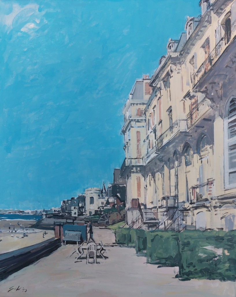Sander van Walsum bedient zich van een volkomen andere stijl. Lange tijd was hij slechts schilder in gedachten. In de jaren zeventig werd zijn ambitie om te schilderen IN DE GEEST VAN MONET doorkruist door het dictaat van de abstractie, daarna door het primaat van het werk (voor NRC Handelsblad en, vanaf 1996, de Volkskrant). Schilderen werd gereduceerd tot een liefhebberij die incidenteel in het weekend kon worden beoefend. Daarin is pas de laatste tien jaar geleidelijk verandering gekomen. Hij exposeerde meermaals in Kunstcentrum Haarlem. Op 14 juni jongstleden sloot hij zijn journalistieke leven in de Volkskrant af met een ode in woord en beeld aan Claude Monet. Eindelijk stonden schilderen en schrijven niet langer met elkaar op gespannen voet. In de Sociëteit zijn meerdere doeken te zien die Van Walsum heeft geschilderd ten behoeve van zijn Monet-artikel in de Volkskrant, als ook schilderijen van Haarlem en ommelanden.
