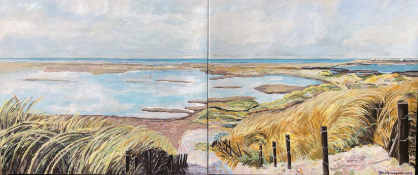De expositie “Aan het Water/Strand” laat een verscheidenheid zien aan beleving van dit thema, die elke kunstenaar op zijn eigen manier heeft uitgedrukt.