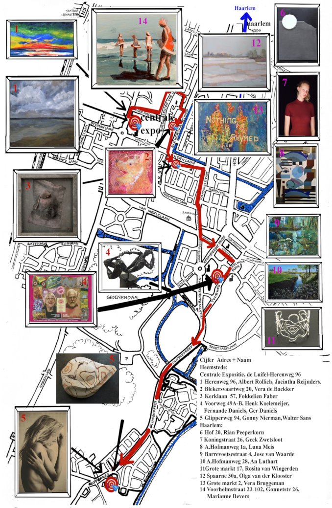 Bezoekers kunnen vanuit De Luifel via een fietsroute de ateliers van de deelnemende kunstenaars bezoeken.