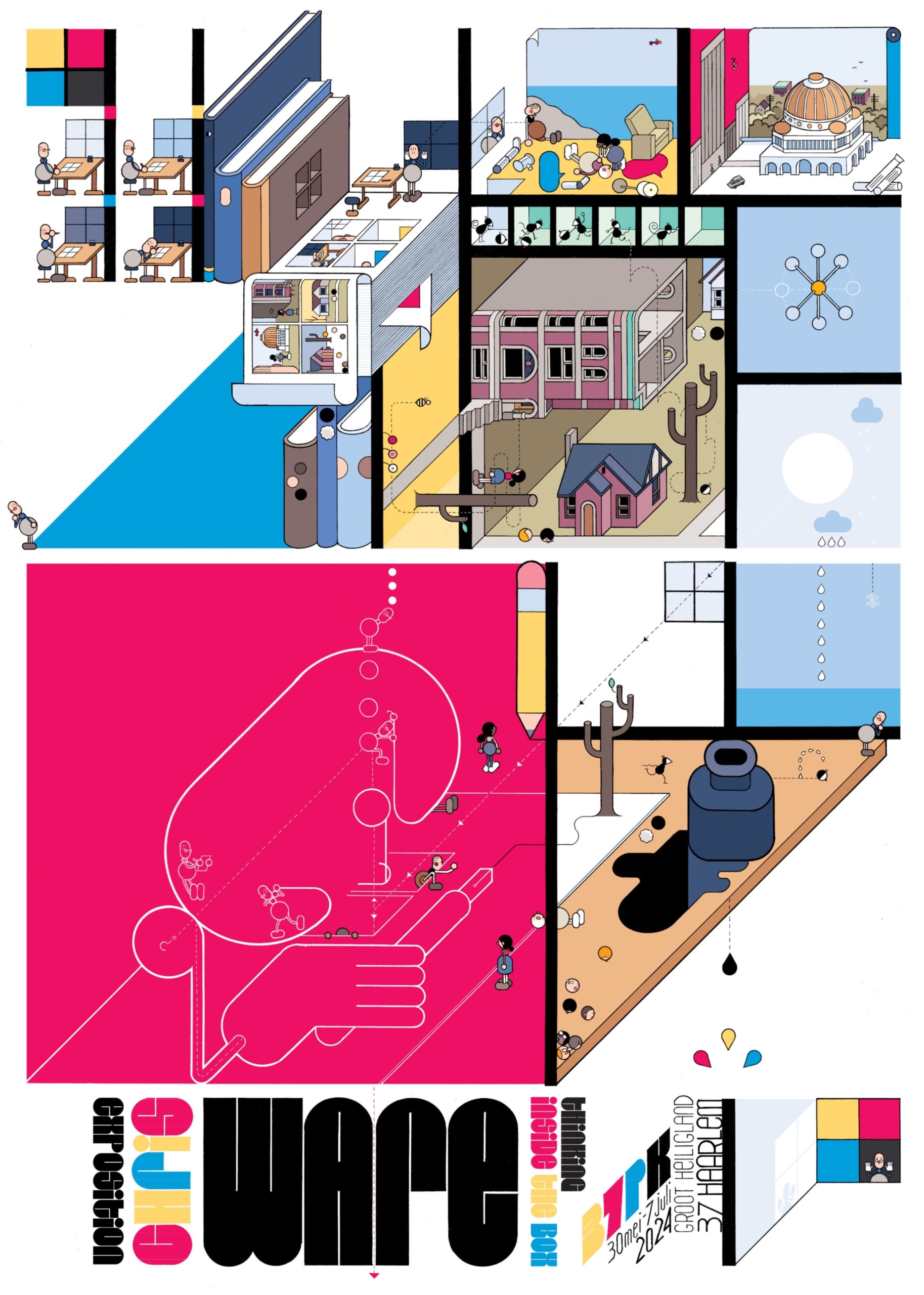 De Stripdagen Haarlem en 37PK presenteren ‘Chris Ware: Thinking Inside the Box’. Deze overzichtstentoonstelling van momenteel de belangrijkste stripauteur en cartoonist van de VS is ontwikkeld in nauwe samenwerking met Chris Ware zelf en laat de volledige rijkdom van zijn oeuvre zien. Niet alleen wordt er een grote hoeveelheid originele werken getoond van deze uitzonderlijke kunstenaar die de Grand Prix kreeg op het internationale stripfestival van Angoulême in 2021, maar ook objecten, zoals modellen en poppen, die zijn verhalen in de derde dimensie aanvullen.