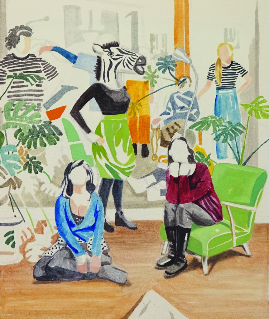 dagelijks leven. Haar focus verschuift voortdurend van interieur naar portretschilderen. Ze is niet geïnteresseerd in portretten zelf als genre, maar in de constellatie tussen onderwerpen in haar schilderijen, de relatie tussen onderwerpen en interieur.