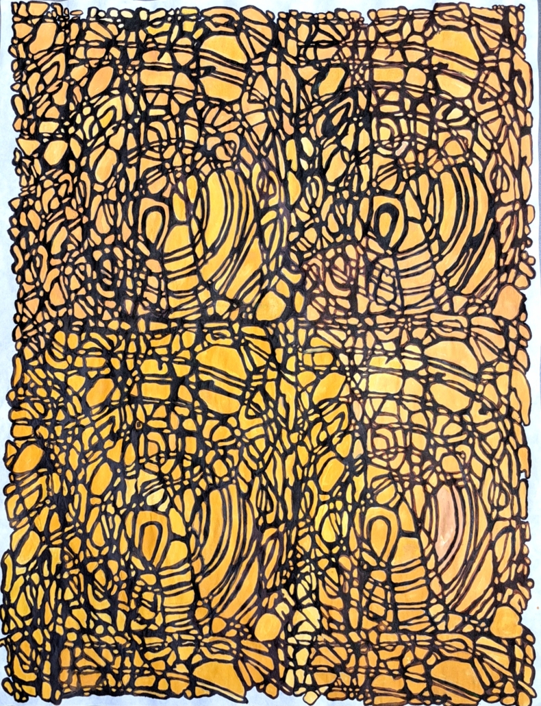 Stance Oonk, zoekt naar beelden in haar tekeningen die de wereld achter de zichtbare werkelijkheid laten zien. Ze noemt dit ook de ruimte achter je gedachten, een plek waar zowel persoonlijke als archetypische beelden te vinden zijn.