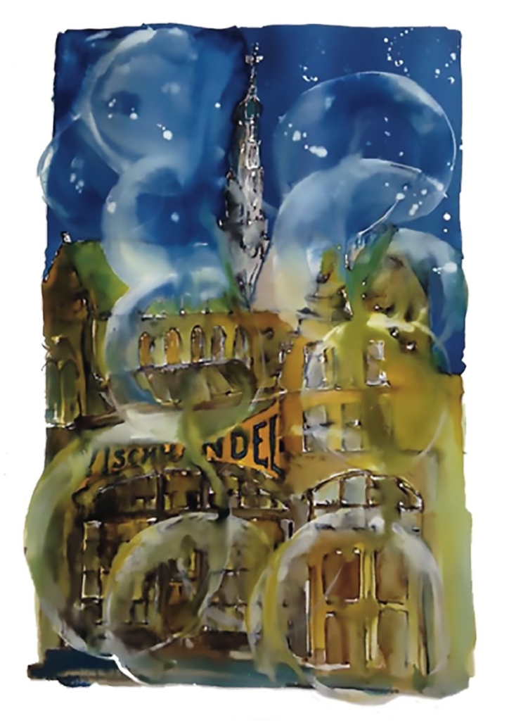 Hans van Duivenbode verbeeld voor deze expositie het sprookje “Stoomzeep”. Hans citeert: “Met enorm geklots en geborrel kwamen zeepbellen in betoverende kleuren buitelend en dansend uit het spaarnewater omhoog. …” “… zij bewogen langs de Koudenhorn, de Bakenessergracht, de Grote Markt en Riviervismarkt. Overal waren zeepbellen en vormden zich in en om alles heen…”. Benieuwd hoe dat er uit ziet? Kom het werk ‘motus balla est’ van Hans bekijken en aanschouw de zeepbellen in Haarlem.