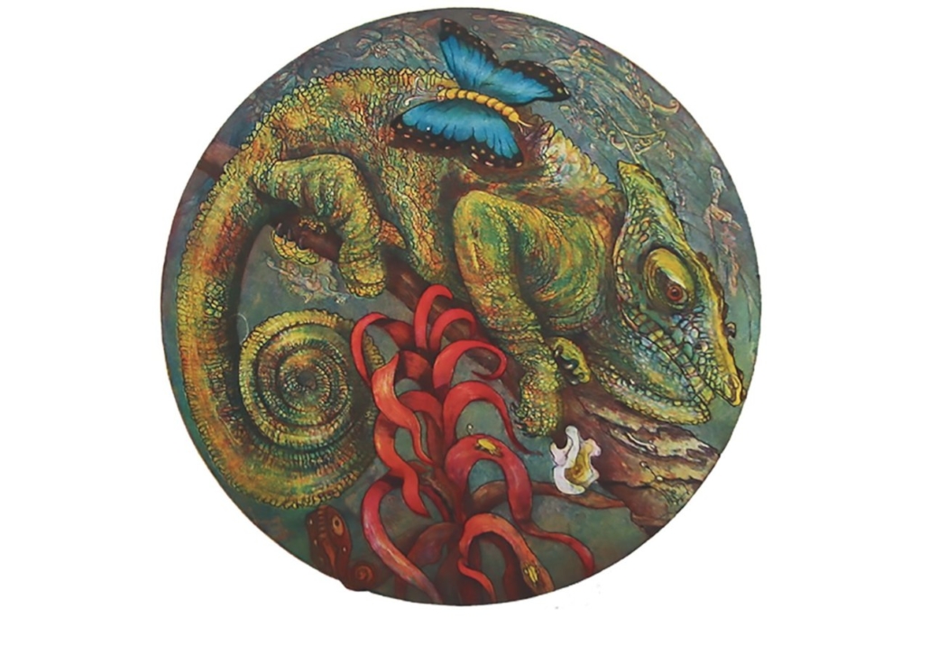 Bij Rob Clous is de hele expositie rond: etsen in het rond, zelfs de etsplaten van zink zijn hier rond en ook de inlijsting was een heel karwei om het rond te maken. De onderwerpen: de ruimtevaart… andere planeten… het regenwoud. Rob: “Bij rond denk ik aan: rond neuzen… rondzingen… ronduit… ronde tafel… de ronde doen en rotonde”.