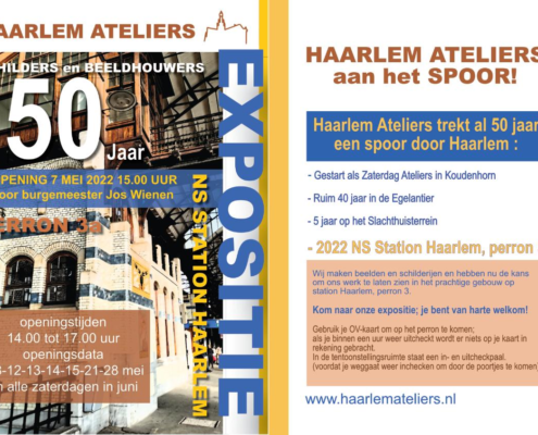 Het is 50 jaar geleden dat de voorloper van Haarlem Ateliers is begonnen. De beeldhouwers zijn bovendien onlangs verhuisd naar station Haarlem Centraal. Genoeg aanleiding voor een expositie van de schilders en de beeldhouwers!
