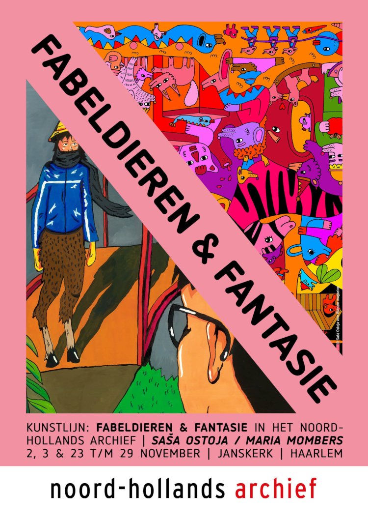 Het Noord-Hollands Archief pakt dit jaar tijdens de Kunstlijn uit met illustratoren die hun eigen fabelachtige figuren creëren. Getoond wordt het fantasierijke werk van kunstenaar Saša Ostoja en van Maria Mombers, student aan de Willem de Kooning Academie in Rotterdam.