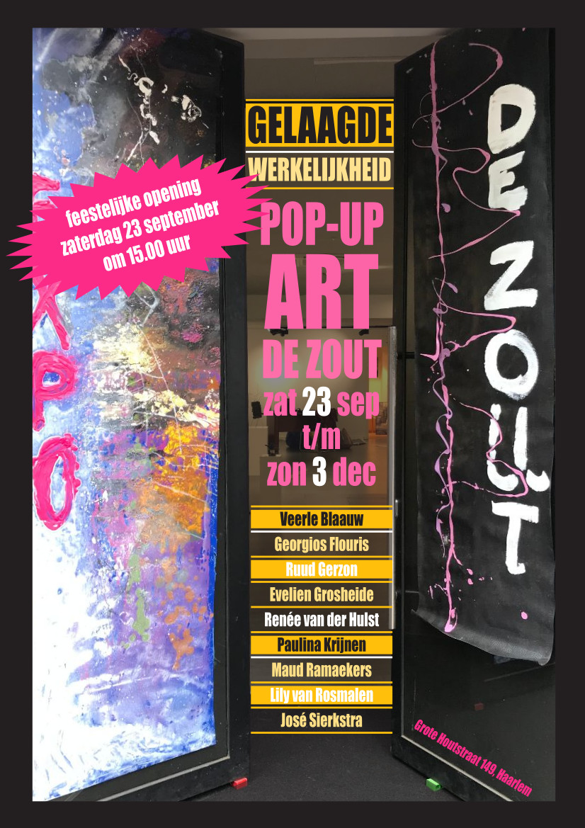 De expositie wordt op zaterdag 23 september om 15.00 uur geopend en is tot 4 december te zien op zaterdagen en zondagen van 12.00 tot 17.00 uur in pop-up galerie De Zout, Grote Houtstraat 149, Haarlem.