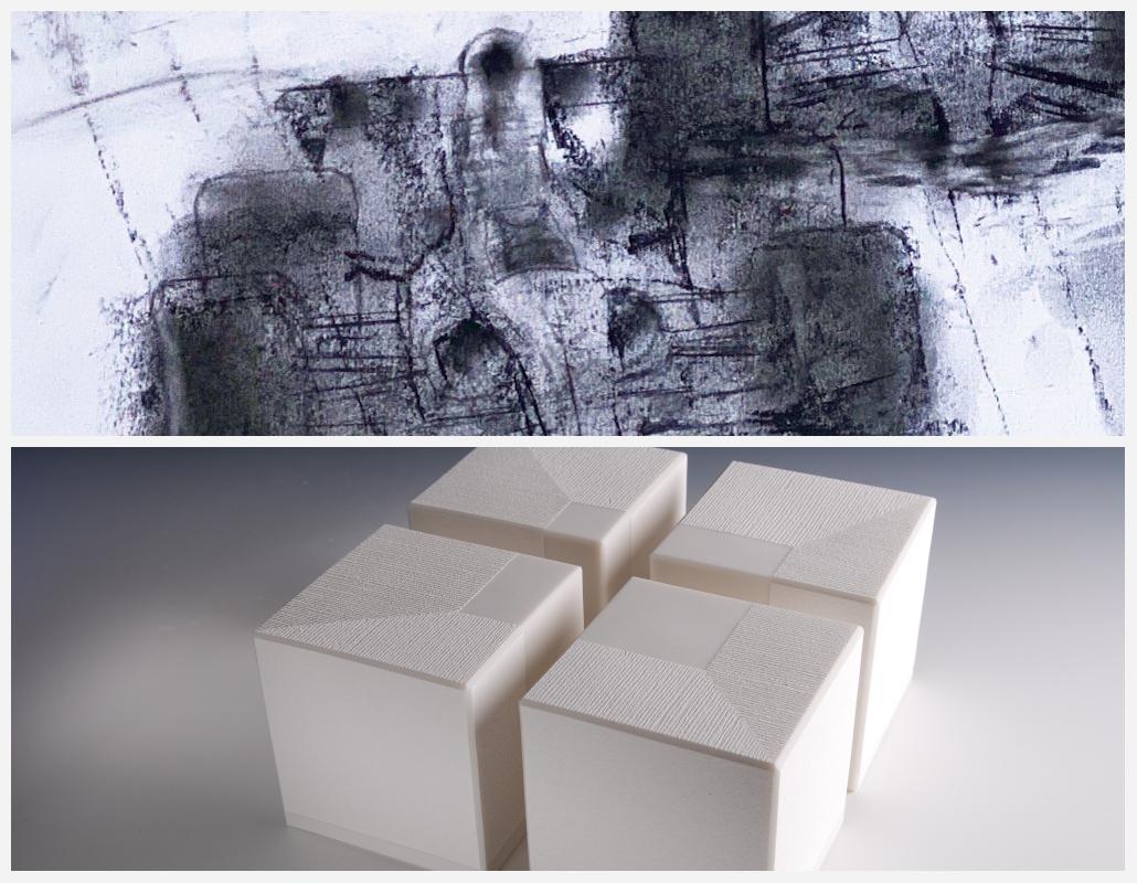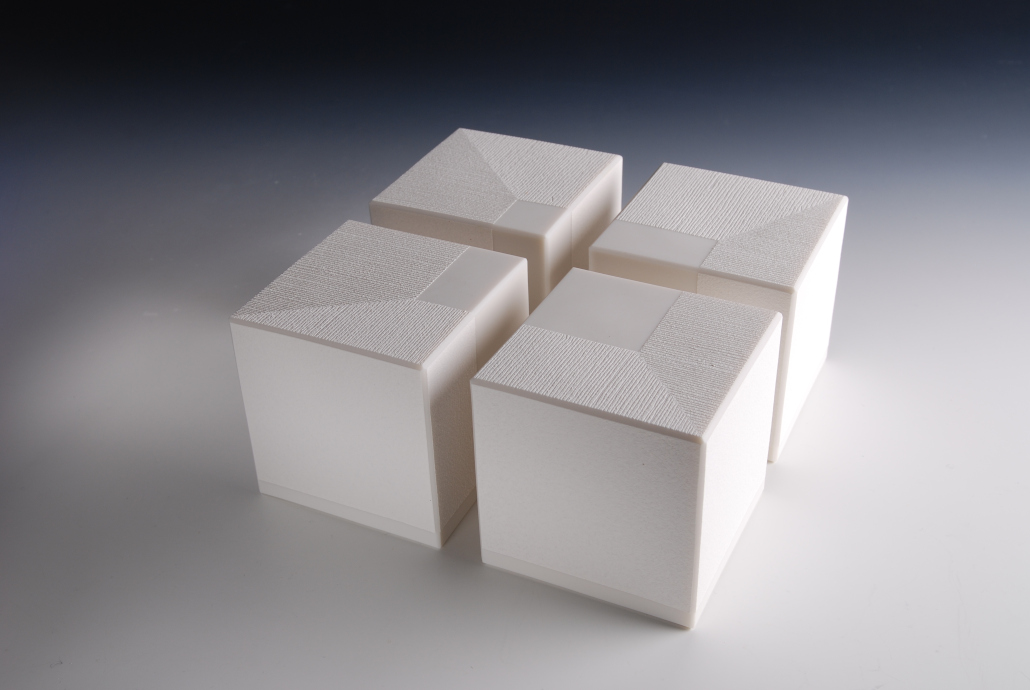 Vele experimenten met oppervlaktetexturen heeft hij toegepast op kubussen van porselein. Fascinerend vindt hij de resultaten van grafische patronen, ingekraste lijnen en de ontstane contrasten van de ‘sneeuwwitte‘ huid van het porselein. Het doet hem terugdenken aan de jaren 70, toen hij kennis heeft gemaakt met het werk van kunstenaars uit de Nederlandse NUL-beweging. Jan Schoonhoven en Ad Dekkers zijn daarom voor hem ook een bron van inspiratie.