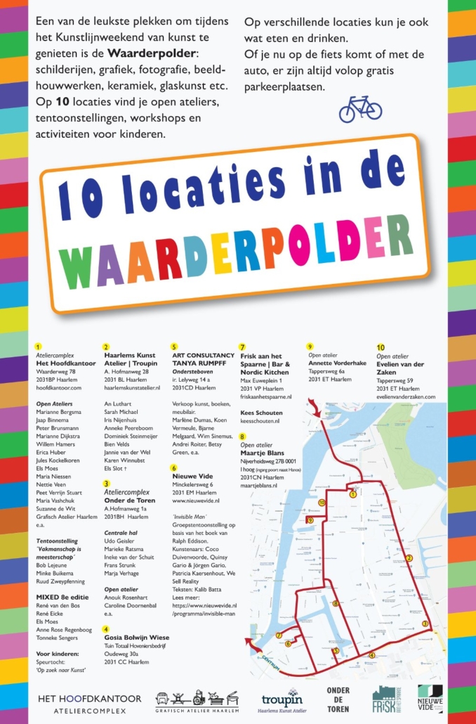 De expositie in Onder de Toren maakt deel uit van de speciale Waarderpolder kunstroute. Een ideaal rondje om te fietsen, maar per auto is ook prima te doen. Parkeren is overal gratis!