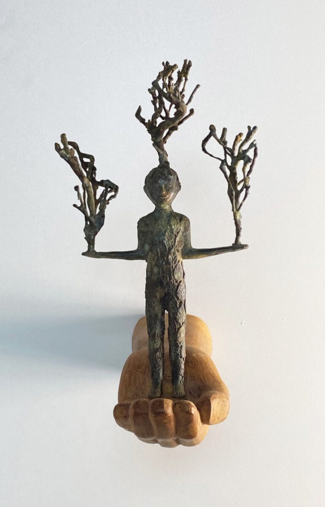 Lon’s beelden en schilderijen wijzen teder maar beslist op het verdwijnen van de natuur. De barricade waar ze op staat zijn de schilderijen en de beelden die ons confronteren met onze leefwijze.