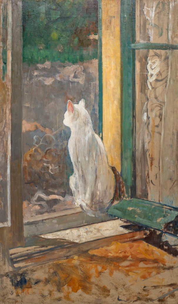 Witte poes in een open raam- Jacobus van Looy, c. 1895, olieverf op doek, collectie Frans Hals Museum schenking Stichting Jacobus van Looy. Foto: Arend Velsink.