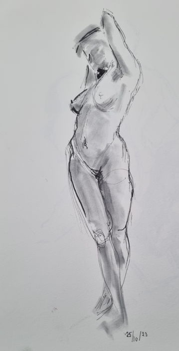 Licht, houding, fysiek, expressie, en verstilling worden door Erzsebet Hatvari vastgelegd in een tekening. Binnen de gestelde tijd kiest de tekenaar voor lijnen en vlakken van grof tot fijn. “Zo danst mijn hand en vangt mijn oog.” Voor Joke Kokkelkoren zijn de tekenavonden altijd zeer belangrijk geweest omdat er een ruim aanbod van vrouwen-en mannenmodellen is. Barbara Schröder werkt graag naar model. Een klassieke theorie is: wie goed model leert tekenen kan alles tekenen. In haar creatieve proces verwerkt ze emoties en ervaringen en vindt ze een betere balans in het leven.