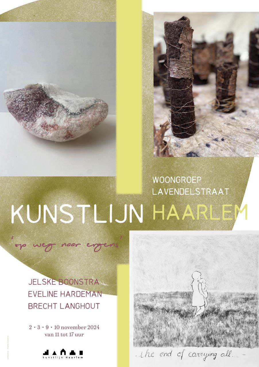 Brecht Langhout presenteert tijdens de expositie in de Lavendelstraat, objecten die zijn opgebouwd uit gevonden en gejutte materialen. Door papieren, textiele en keramische vormen toe te voegen ontstaat er een verstilde wereld die uitnodigt om zachtheid te ervaren.