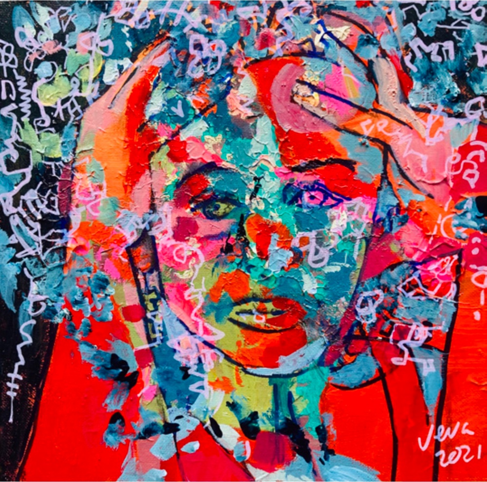 Het kleurrijke zelfportret in acryl op doek is van Afke Spaargaren. Lia Kok werkte met acryl op linnen en op hout. Vera Bruggemans “druk in mijn hoofd “ is in acryl geschilderd evenals de portretten van Eiko Maruyam en Reina de Haan. Femke van der Zee met haar pentekening en Jan van Wensveen. Het zelfportret in klei is van Ellen Wolff. Men zal haar herkennen aan het haar.