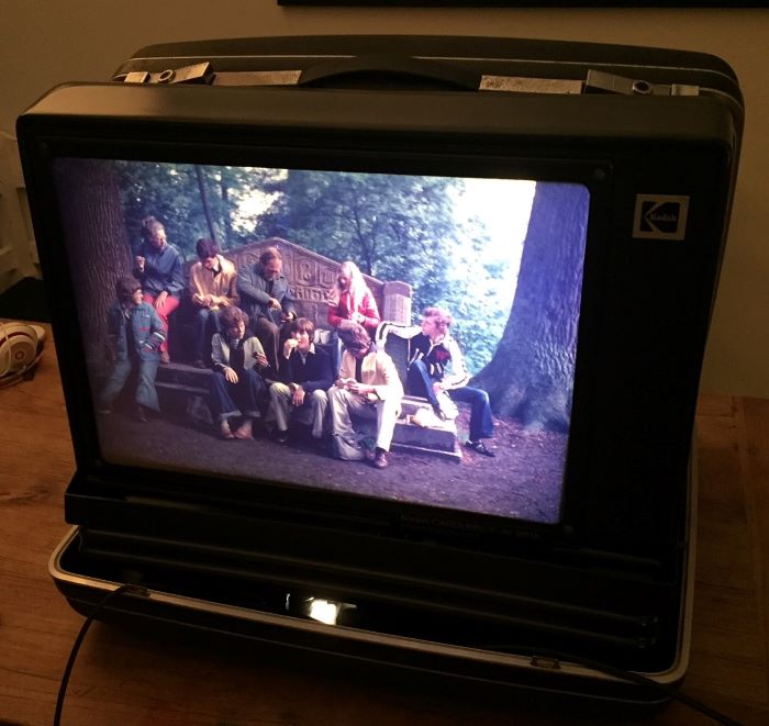 Dia uit 1979: Rustplaats op het stenen bankje in de Haarlemmerhout