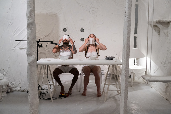 pulling blood from stone is een immersieve installatie die reflecteert op de zwaarte van instortende systemen, de pijnlijke urgentie van hoop en de aanwezigheid van pijn uit het verleden in het heden. Door middel van videowerken, live performances en fysieke installaties verkent het duo het ongemak van het concept ‘thuis’. Ze betreden elkaars geschiedenis(sen) en wisselen ervaringen uit op een chaotisch speelveld. Hiermee betreden zij een nieuw hoofdstuk in hun benadering van hun manier van werken.