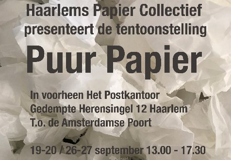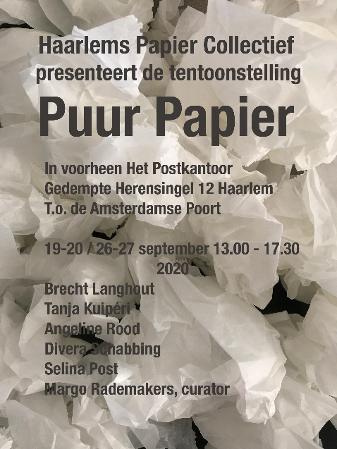 Het Haarlems Papier Collectief laat gedurende twee weekeinden (19 & 20 en op 26 & 27 september 2020) haar werk zien in de tentoonstellling ‘PUUR PAPIER’ in v/h Postkantoor.