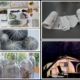 Dit werk wordt verbeeld in een tafelstuk en hangende objecten van wit keramiek met gouden accenten.