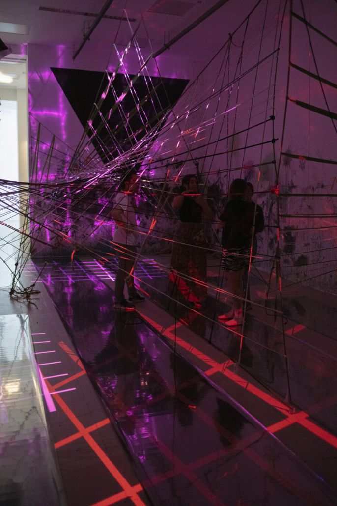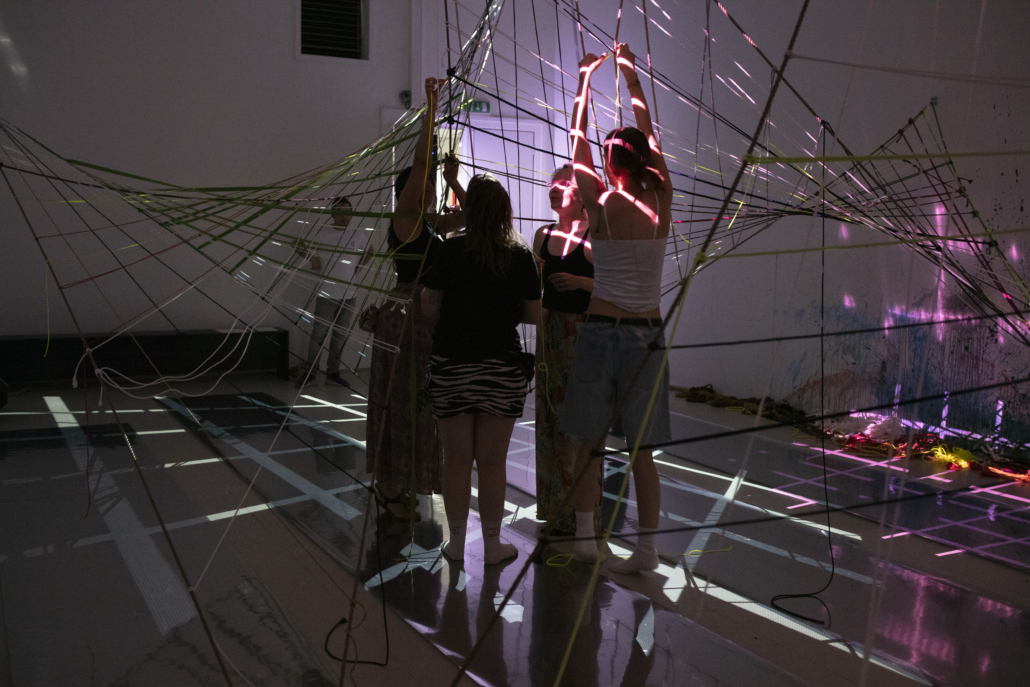 Tijdens deze tentoonstelling wordt u uitgenodigd om interactie aan te gaan met een grote installatie, speciaal gemaakt voor de ruimte en om deel uit te maken van het netwerk dat samen een toekomst creëert.