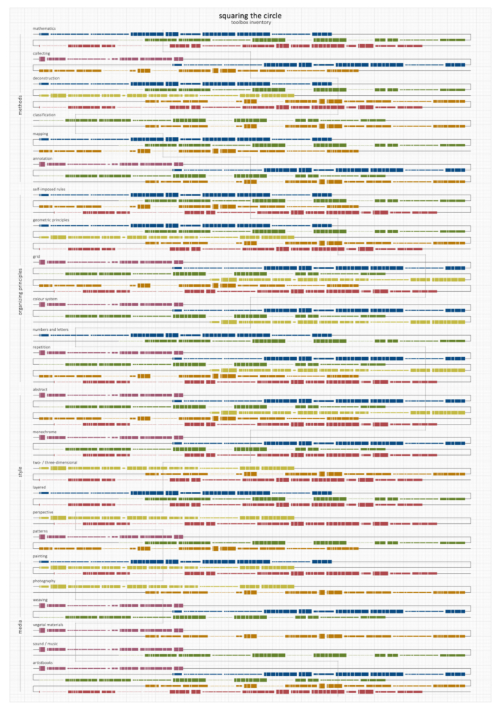 Dit hoofdstuk in de geschiedenis van de wiskunde komt overeen met een proces dat de kunstenaars in deze tentoonstelling gemeen hebben. Net als de meetkundigen bij de kwadratuur van de cirkel, proberen ze allemaal iets te doen wat op het eerste gezicht onmogelijk lijkt, maar wat kan worden bereikt als je besluit de wereld om ons heen te fragmenteren en opnieuw te ordenen. Deze kunstenaars zijn ook gefascineerd door het vierkant en de cirkel als abstracte structuren die orde scheppen in de chaos.