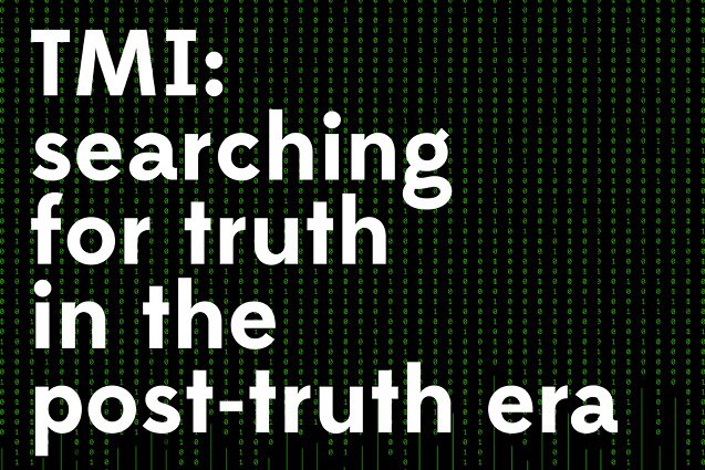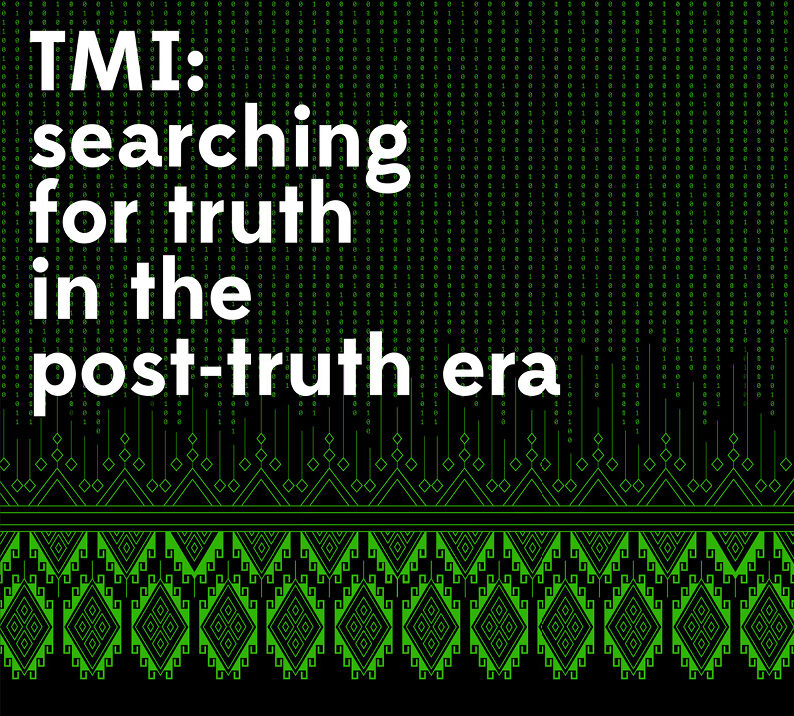 Het acroniem TMI staat voor Too Much Information, en wordt online vaak gebruikt als uitdrukking wanneer iemand teveel informatie over zijn of haar persoonlijke leven deelt. Maar we kunnen het ook zien als een commentaar op de constante stroom aan informatie waar we dagelijks aan blootgesteld worden. Zowel online als analoog krijgen we heel wat te verwerken. Ook moet je je dan bij alles nog eens afvragen of het wel betrouwbaar is, of dat je te maken hebt met een ‘alternative fact’. En dan lijken we ook nog in het zogenaamde ‘post-truth’ tijdperk te leven, waarin we inzien dat feiten misschien wel niet meer bestaan.