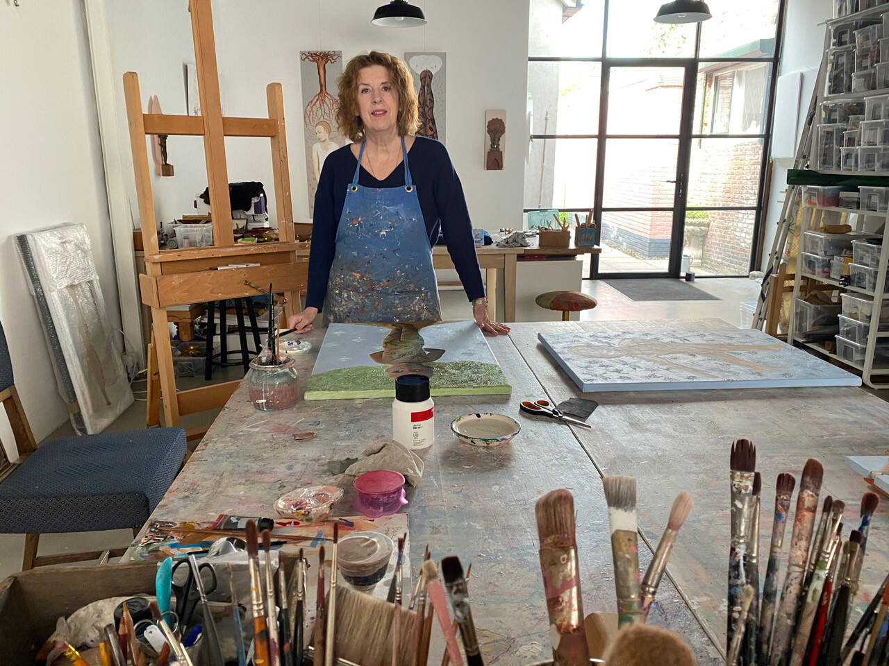 Ze combineert, verandert, voegt toe en laat het beeld ontstaan; ze recyclet de verzamelde materialen tot nieuwe beelden, die vaak ontstaan omdat vormen, kleuren of onderdelen vragen om bij elkaar gevoegd te worden. Wat haar bezig houdt op het gebied van natuur, milieu, het strijdtoneel van de wereld en haar persoonlijke omgeving vertaalt ze in haar schilderijen en beelden. Haar kunstwerken hebben een uitstraling die niet afstoot, maar juist kracht, de positieve kanten en de hoop laten zien.”