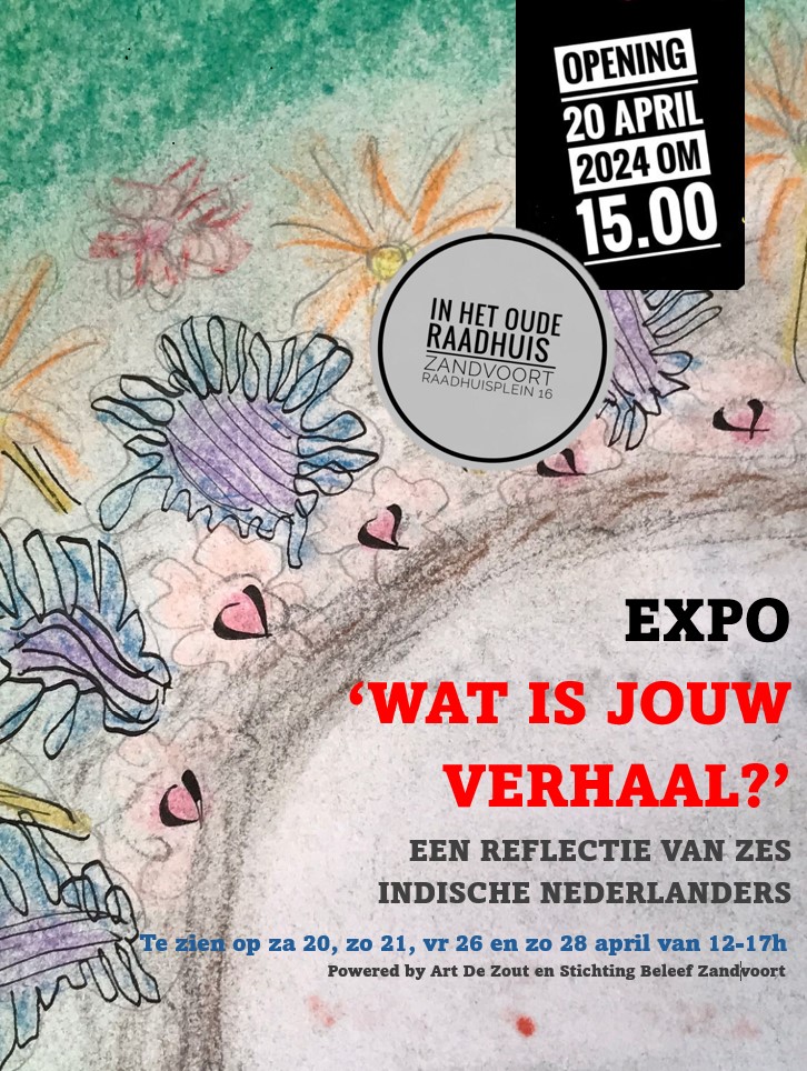‘Wat is jouw verhaal?’ is een initiatief van Art De Zout in samenwerking met Nescio Haarlem. De expositie werd mede mogelijk gemaakt door Stichting Beleef Zandvoort. De tentoonstelling heeft tot doel een platform te bieden voor het verkennen en erkennen van de Indische Nederlandse identiteit, de koloniale historie, ons culturele erfgoed en het bevorderen van intercultureel begrip.