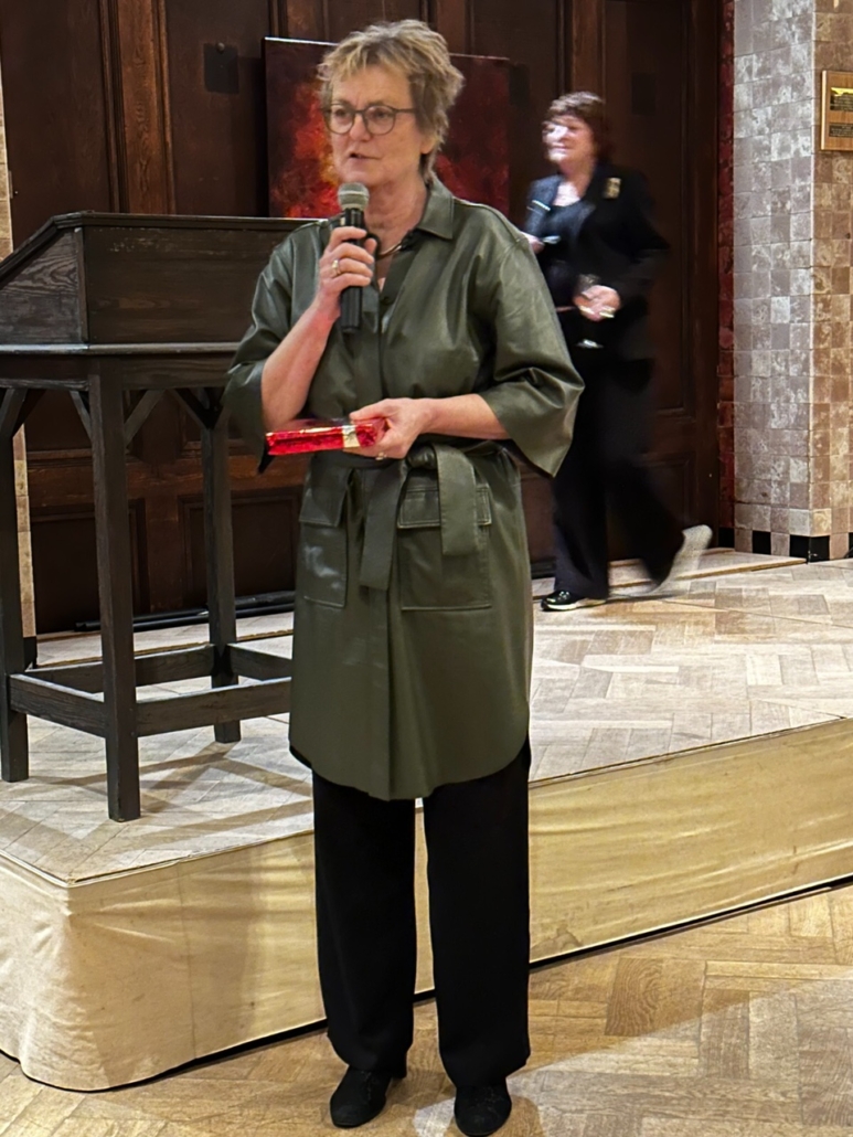‘Zorg ook dat je verkoopt’, is een van haar adviezen aan de deelnemende kunstenaars. Joke Breemouer staat bekend als verbinder en creatieve geest die oog heeft voor details, onverwachte expositielocaties en verrassende kunstenaarscombinaties. Hoewel ze er zelf niet van houdt om te veel op de voorgrond te treden, ontkwam Joke er dit keer niet aan om stevig in het zonnetje te worden gezet. Dat gebeurde met speeches en cadeau’s.