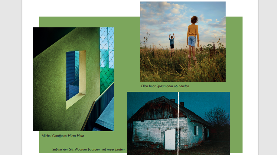 “Mijn foto’s tonen die andere wereld. Een meisje onder een bizar grote maan of een paard zonder hoofd, magisch realistische beelden. Ik werk samen met een bevriende dichter Bas Belleman. Soms schrijft hij een verhaal bij mijn foto’s en andere keren maak ik foto’s bij zijn verhaal. Zo creëren we samen nieuwe sprookjes. Bijvoorbeeld over een meisje dat het paard zonder hoofd tegenkomt en op zoek naar dat hoofd allerlei avonturen meemaakt. We bieden de kijker een nieuwe realiteit, een moment om even uit de dagelijks routine te stappen. Meestal laat ik de foto’s spreken zoals ze zijn, soms pas ik een kleur aan met gebruik van Photoshop.”