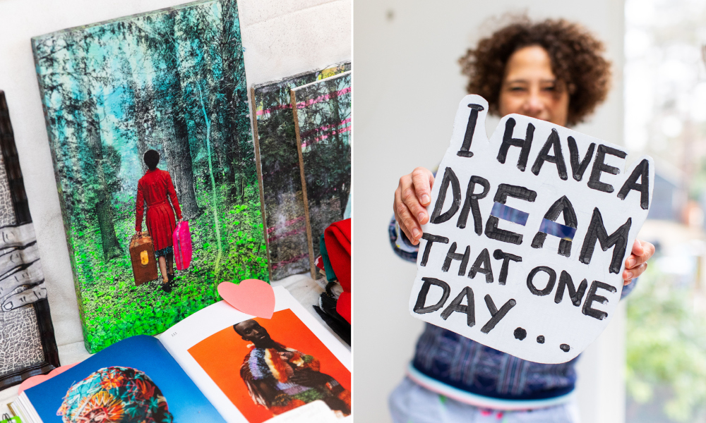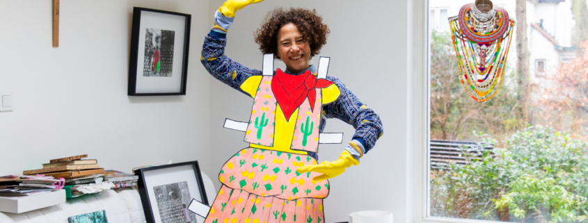 “Toen ik heel jong was, was kleding al heel erg belangrijk voor mij. Daarom ben ik ook modevormgeving aan de kunstacademie gaan studeren. Terwijl ik eigenlijk helemaal niet zo’n modetype was. Hoe je jezelf ergens staande kan houden, op een plek die niet je thuis is, waar je niet geboren bent, met een hele andere cultuur. Je huid en je krulletjes kan je niet uittrekken. Maar je kleren kunnen er wel overheen, dat bedekken.”