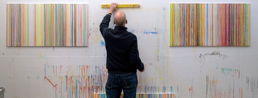 Momenteel geen muziek of publiekelijke performances, maar rust. Rust in zijn hoofd en rust om zich heen als hij werkt. Jarenlang heeft hij gedreven schilderles gegeven op diverse kunstacademies, nu kan hij zich geheel focussen op zijn gezondheid en werk. Want het onderzoek naar mogelijkheden gaat door. De laatste jaren is hij aan het experimenteren met spalters, brede platte kwasten. De ene keer in combinatie met de vallende lijntechniek, de andere keer legt hij zichzelf de beperking op enkel met één kleur en een spalter aan de slag te gaan.