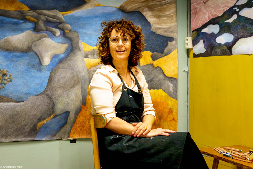 De kunstenaar is altijd op zoek naar dit soort plekken. Een paar keer per jaar gaat ze naar Normandië. Ze is onder de indruk van de kliffen langs de kust. “Het kustgebied is bijzonder daar, het raakt me. We hebben ook een huisje op Texel. Ik voel me thuis bij de zee. Het water is fijn, maar kan tevens een beetje angstaanjagend zijn vanwege zijn omvang. Die dubbelheid vind ik interessant, het helpt me om het leven te relativeren. Wie ben ik en wat is echt van belang? Ik heb behoefte om aan de binnenkant te blijven, ook al ben ik expressief en aanwezig. Er gebeurt veel met mijn gevoel en in mijn fantasie.” Haar uitbundige lach en extraverte gedrag lijken in schril contrast te staan met haar verstilde werk. Uren achtereen kan ze aan een tekening werken. Het geeft haar rust. “Ik vind het heerlijk om alleen te tekenen, maar ik ben geen kluizenaar. Ik houd ook van contact met mensen.”