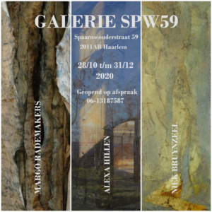 GALERIE SPW59 is vanaf 31 oktober tot 31 december op afspraak te bezoeken. Expositie Galerie SPW59 komt met zeer diverse werk van de volgende kunstenaars: Niek Bruynzeel - assemblages, schilderijen, tekeningen & foto's Binnen de kunst beweegt Niek zich op meerdere vlakken. In zijn potloodtekeningen en assemblages staan de natuur en het “gedroomde” centraal, terwijl in de schilderijen en foto’s het accent ligt op structuur en verval. Niek Bruynzeel Margo Rademakers – papierkunst Bij alles wat Margo Rademakers maakt komen…