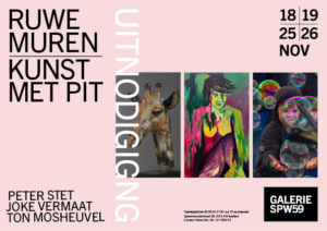 Galerie SPW59 is verheugd met de nieuwe expositie "Over de brug en terug" met 3 zéér verschillende kunstenaars. Feike Kloostra – Mash-up Art Zijn kunst vindt zijn oorsprong veelal in bestaande dingen. Deze voegt hij samen in wat hij zelf noemt ‘Mash-up kunst’. Tal van werelden die samenkomen in spannende, nieuwe composities. Denk aan strips, verpakking labels, modebladen, flarden van straatposters en songteksten. Alles wat hem visueel en muzikaal prikkelt gooit hij in de blender. Met de herkenning van de…