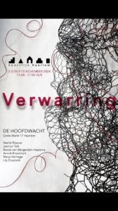De volgende kunstenaars exposeren in De Hoofdwacht tijdens Kunstlijn Haarlem 2024 VEERLE BLAAUW Ruimtelijke kunst Structuur en tussenruimte. Dat is het thema waar ik me mee bezighoud. Wanneer is structuur houvast, wanneer beklemmend, hoeveel ruimte is er, wat gebeurt in de tussenruimte. De vrije vorm is een (onder)zoekende vorm. De vorm, ruimte en materiaal veranderen steeds in kleine stappen. Meer en minder ruimte, lossere vormen of strakker, meer of minder licht doorlatend. Ik speel met licht en schaduw, lijnen vormen…
