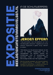 In de schijnwerpers IJmuidenaar Jeroen Effern toont zijn werk in wisselende expositie ‘In de schijnwerpers’ van Stadsschouwburg & Filmtheater Velsen in samenwerking met Beeldend Kunstenaars Velsen Effern schildert vrije portretten naar de beeltenis van voor hem belangrijke personen. De portretten worden opgebouwd uit potlood, uitgewerkt in gesso, acryl- olieverf en lakken. De kleinere werken zijn schilderingen over, of aanpassingen op, gevonden foto's en prenten. Op zaterdag 27 januari opent Jeroen Effern de expositie feestelijk om 14.30 uur. Gratis toegankelijk. Wees…
