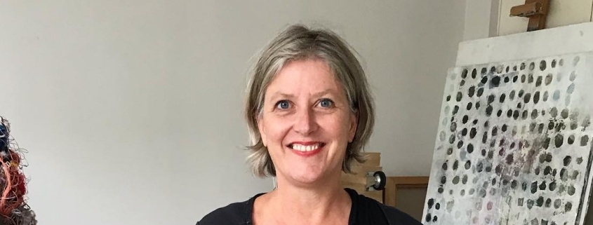 Begint kunst bij jou bij het vinden? “Mijn liefde voor de natuur, voor het verzamelen, het werken met mijn handen, beeldend werk maken, het hoort allemaal bij elkaar. Ik heb de hele winter takjes opgeraapt, deze wikkel ik in met stukjes textiel. Wat ik wil laten zien is dat de natuur zo mooi en belangrijk is. Hoe meer je weet, hoe meer je ziet. Slakjes op de duingrond, waar groeit welke paddenstoel. Respect voor de natuur is dan ook één van mijn uitgangspunten tijdens de schilderlessen die ik geef aan jonge kinderen. Naar buiten en het schetsboek mee.”