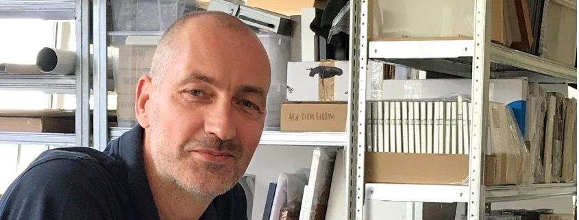 Op bezoek bij Charles Bruijn in zijn nieuwe atelier: ”Ik heb alles net uitgepakt, ingericht en opgehangen. In mijn vorig atelier in Spaarnwouderstraat kon ik niet alles kwijt, nu heb ik een mooie grote ruimte waar ik kan werken en tegelijk mijn kunst kan laten zien.”