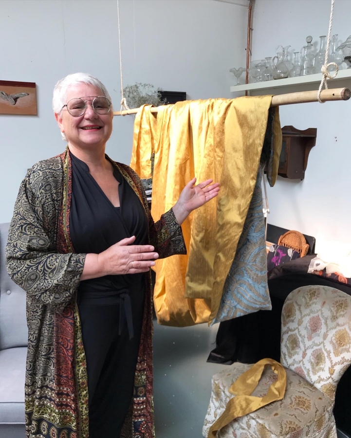 Sasja woont doordeweeks in haar atelier. “Het is een voordeel om hier altijd te zijn. Ik kan veel tijd besteden aan het kijken naar mijn werk. Is het genoeg om de illusie te laten zijn?” Waarom kommetjes? “Chinese porseleinen kommetjes zijn zo mooi gemaakt en zijn door zoveel handen gegaan.” Haar kommetjes belicht zij, want licht en schaduw zorgt voor de illusie. Er is veel vraag naar haar stillevens met kommetjes. Een reden om ook stillevens van stoffen te gaan schilderen. “Ik ben weer aan het ontdekken, nu bezig met een gouden stof. Ik heb de gouden stof voller gemaakt door het voering te geven, zodat de stof valt zoals in die mooie kostuum schilderijen van vroeger, daar hou ik van. Heel veel kijken, er zit zoveel in een stilleven.”