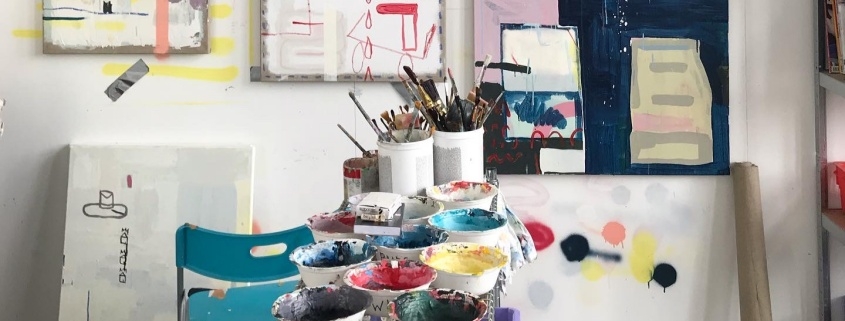 Even buiten muren met abstract. Kunstlijn Haarlem op atelierbezoek bij Kunstlijn deelnemer Youri Alvites in Nieuwe Vide Studio’s.