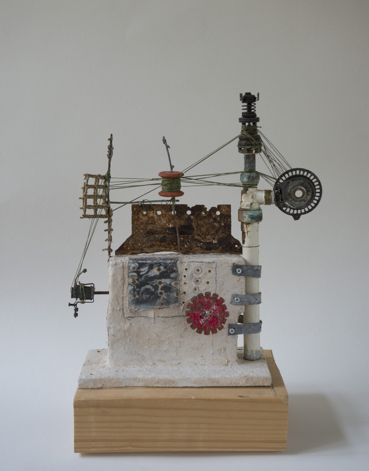 En dan breekt het onverbiddelijke haast aan, waar je op zondagmiddag niet aan ontkomt. Er staat nog zo veel op het lijstje dat het op voorhand vast allemaal niet gaat lukken. Snel nog even langs bij Mino Wortel in de Duvenvoordestraat. ,,Ik ben een paar keer in Teyler geweest. De instrumenten die ik daar zag, hebben me wel geïnspireerd voor het werk dat ik nou laat zien’’, zegt ze wijzend op een werk dat wel iets wegheeft van een klokkentoren. ,,Er zitten herkenbare elementen in afkomstig van een horlogemaker, maar ook van een automonteur, kogellagers en dingen uit een broedmachine. Die breng ik dan samen in de werken die ik maak. Nieuwe objecten met authentieke herkenbare attributen.’’