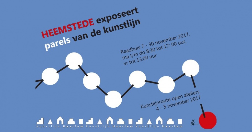 Als Kunstlijn Haarlem is afgelopen zal de expositie ‘Heemstede exposeert Parels van de Kunstlijn’ als overzichtstentoonstelling aanbieden in het raadhuis van Heemstede van 7 t/m 30 november. Openingstijden: ma t/m do van 08.30 tot 17.00 uur en op vrijdag van 08.30 tot 13.00 uur.  Deze expositie wordt overigens officieel op 23 november om 16:00 uur geopend door Antoon Erftemeijer, beeldend kunstenaar en conservator moderne kunst van de ‘De Hallen’ en het ‘Frans Hals Museum’.