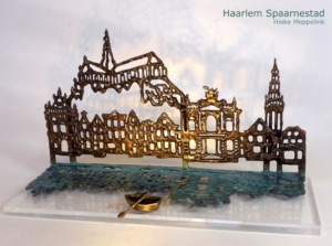 Speciaal voor de Kunstlijn ontwierp beeldhouwster Hieke Meppelink het beeld ‘Haarlem Spaarnestad’ en het is, samen met haar andere beelden én die van haar collega Menno Veenendaal, te zien in een expositie in ateliergebouw De Greiner aan de Voorhelmstraat 23 in Haarlem. Hieke Meppelink: Spaarnestad in brons vereeuwigd Het idee voor het beeld 'Haarlem Spaarnestad' ontstond bij Hieke tijdens één van de dwaalwandelingen door de stad tijdens de eerste lockdown. “De stad lag er verstild bij, er waren nauwelijks mensen…